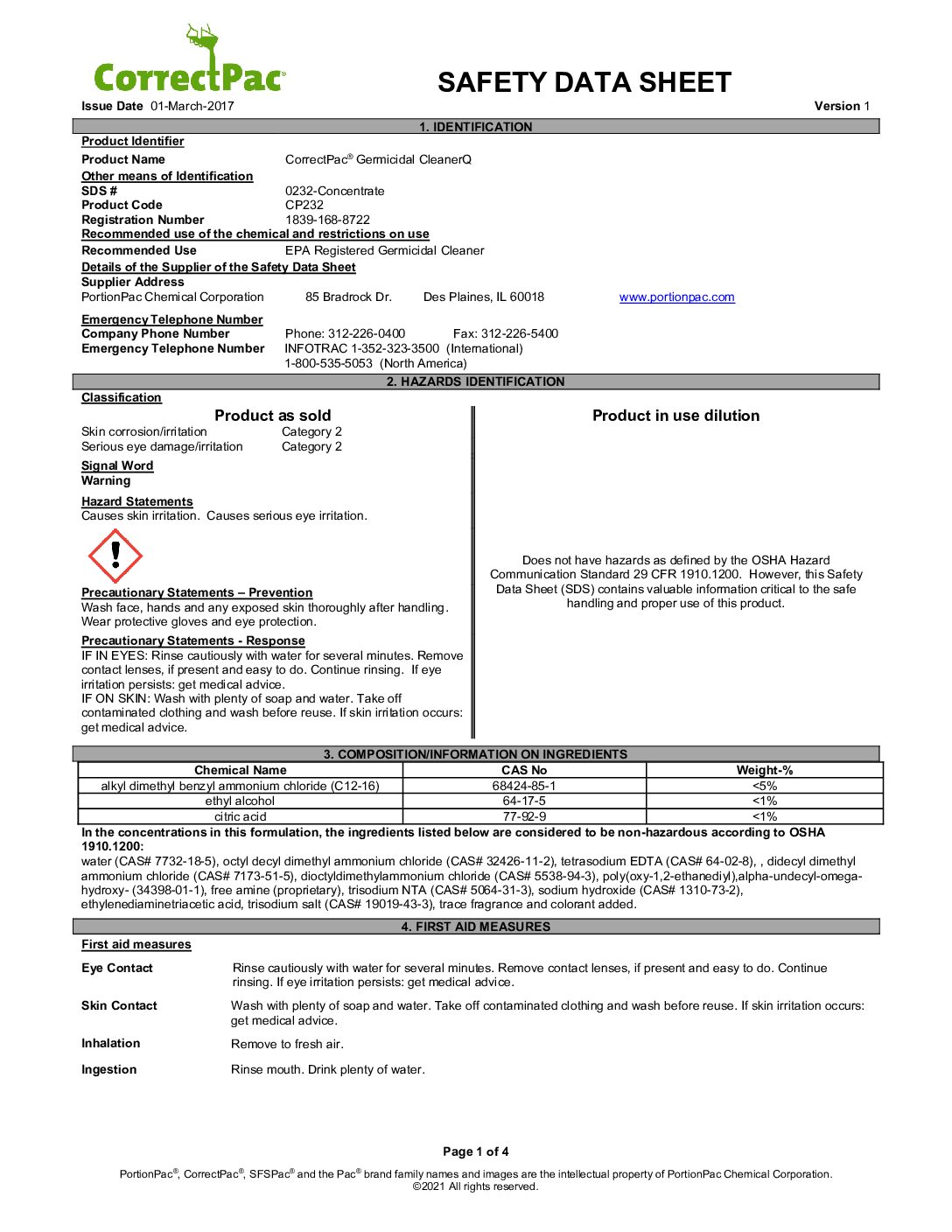 CorrectPac SAFETY DATA SHEET 200Q