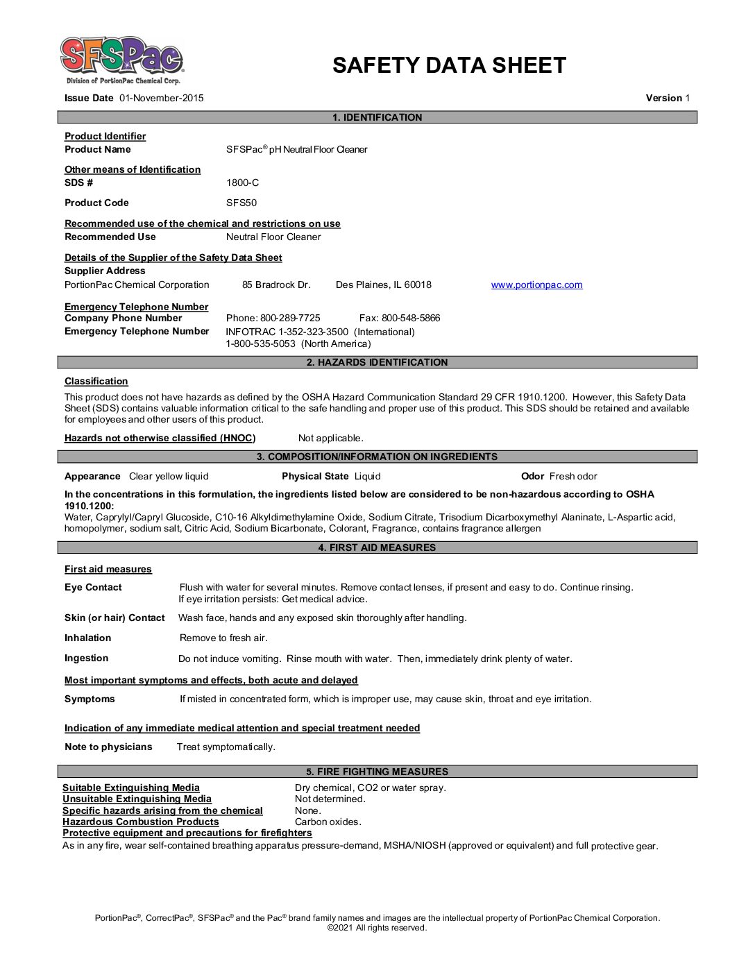 SFSPac SAFETY DATA SHEET 1800