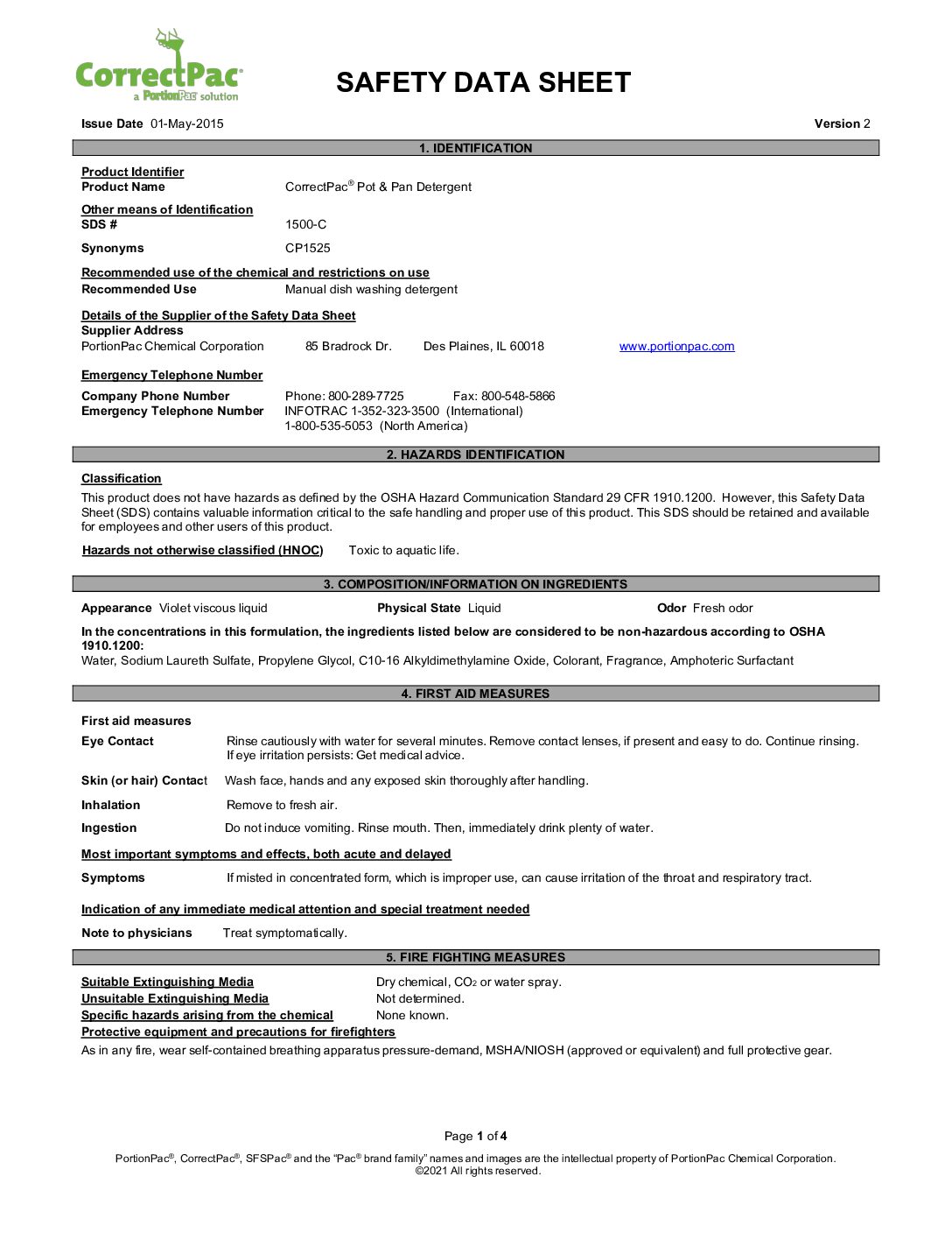 CorrectPac SAFETY DATA SHEET 1500