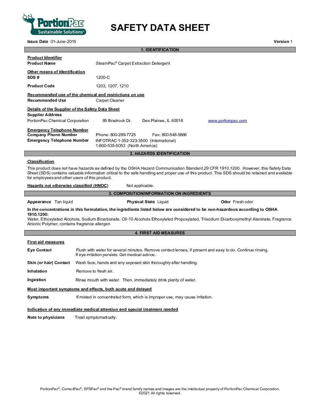 PortionPac SAFETY DATA SHEET 1200
